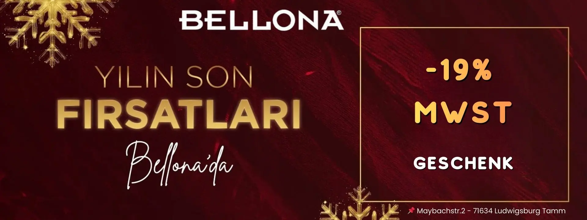 Bis zum 31. Dezember 2025 erhalten Sie bei Bellona in Stuttgart und Frankfurt einen Rabatt von 19% auf die Mehrwertsteuer.